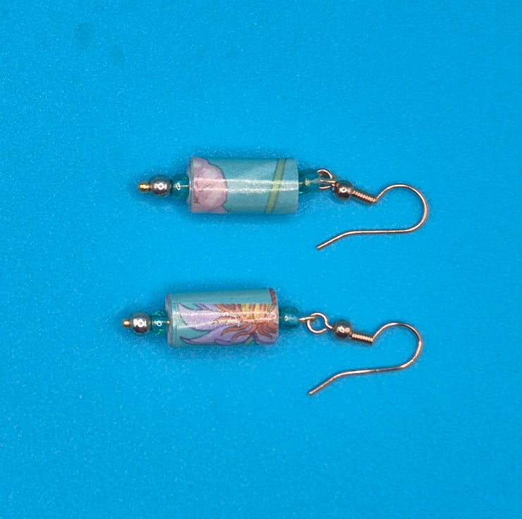 Please note that, as I work with recycled paper, and with whatever design is on a page, beads are not identical.