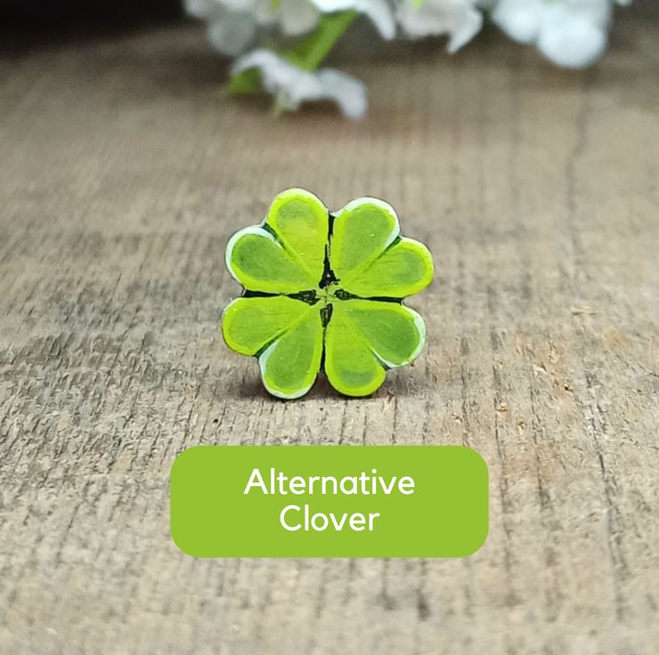 Handmade Irish Shamrock Pin – Wooden Clover Brooch – Good Luck Gift – Hand Painted Jewellery