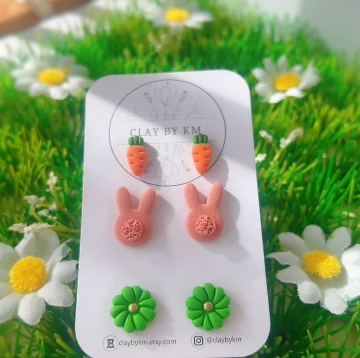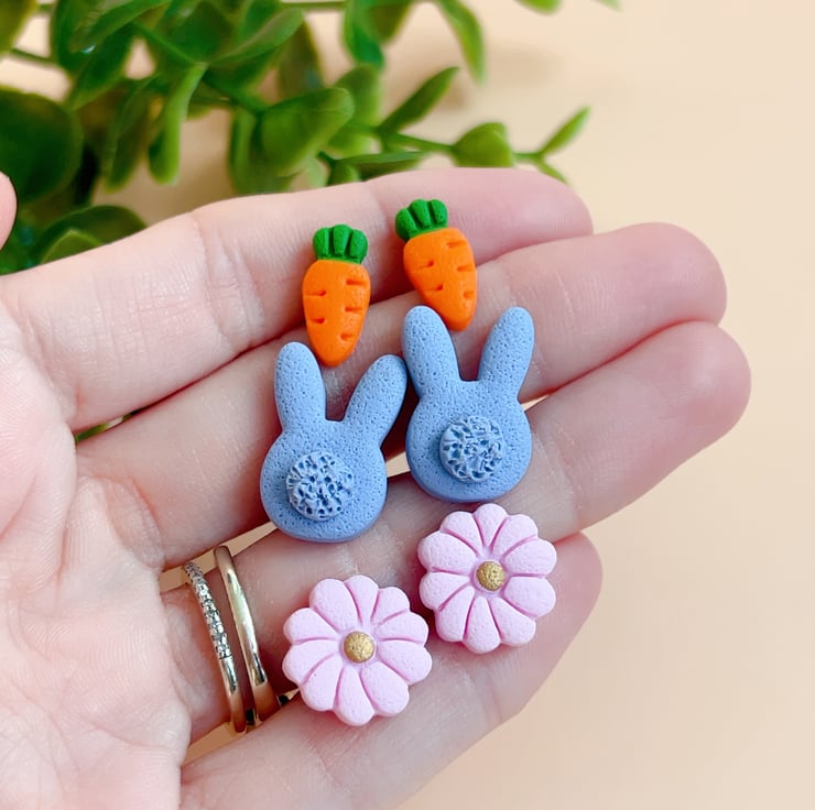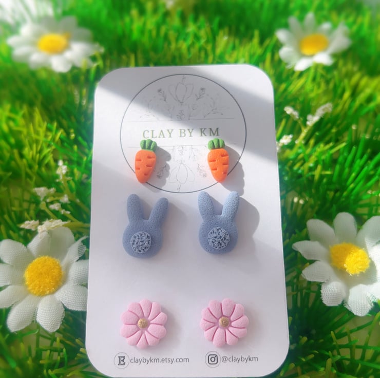 Bring a little bit of spring joy to your everyday look! These adorable earrings are lovingly handcrafted from polymer clay, making each pair a tiny piece of art. Whether you're heading to an Easter brunch or just love cute, seasonal accessories, these studs are the perfect finishing touch.