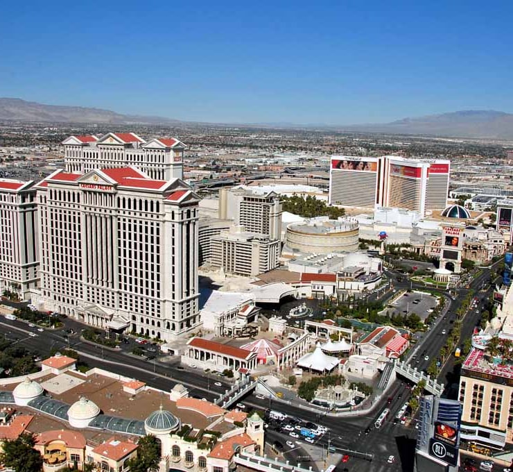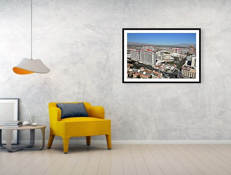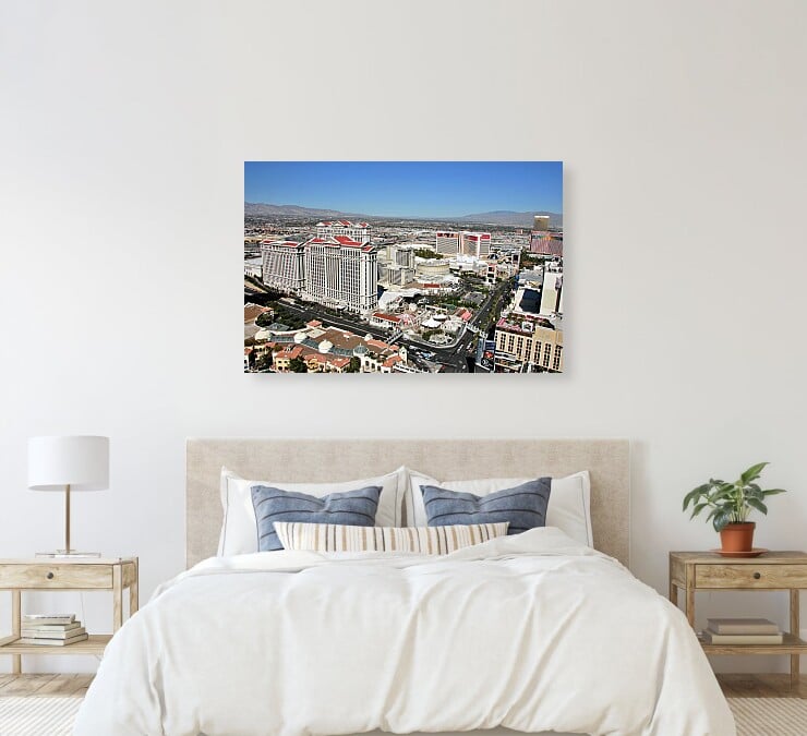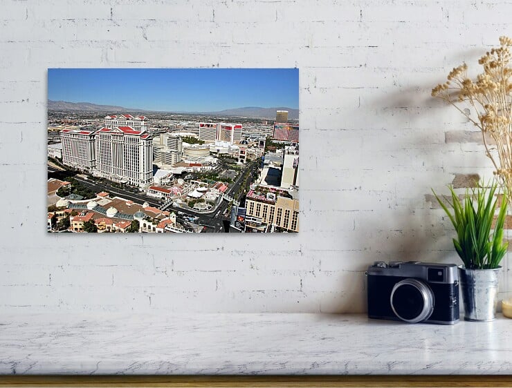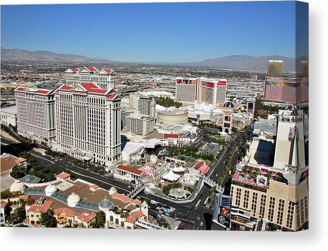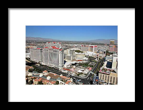 Caesars Palace and The Strip seen from Eiffel Tower replica at Paris Hotel and Casino in Las Vegas Nevada United States of America USA a photographic print photography by Andy Evans Photos