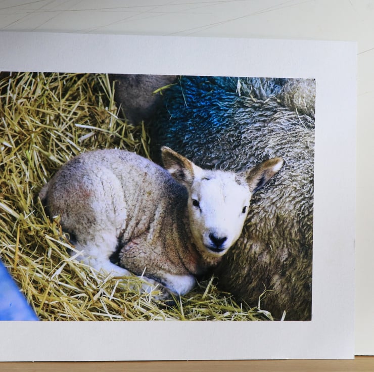 A rustic countryside scene taken in the Norfolk Countryside on a farm near Fakenham. Spring is now in full swing and typified by the arrival of newly born lambs This little beauty was just over 24 hours old and keeping close to its mother. This beautiful image is mounted on white card.