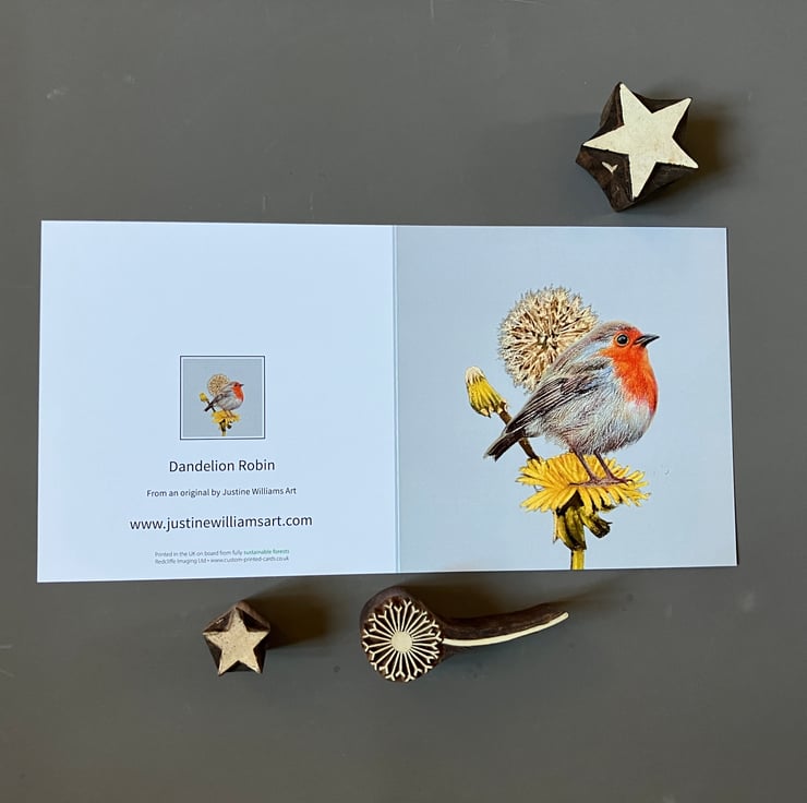 The Dandelion Robin is a blank greeting card for you to write your own personal message.