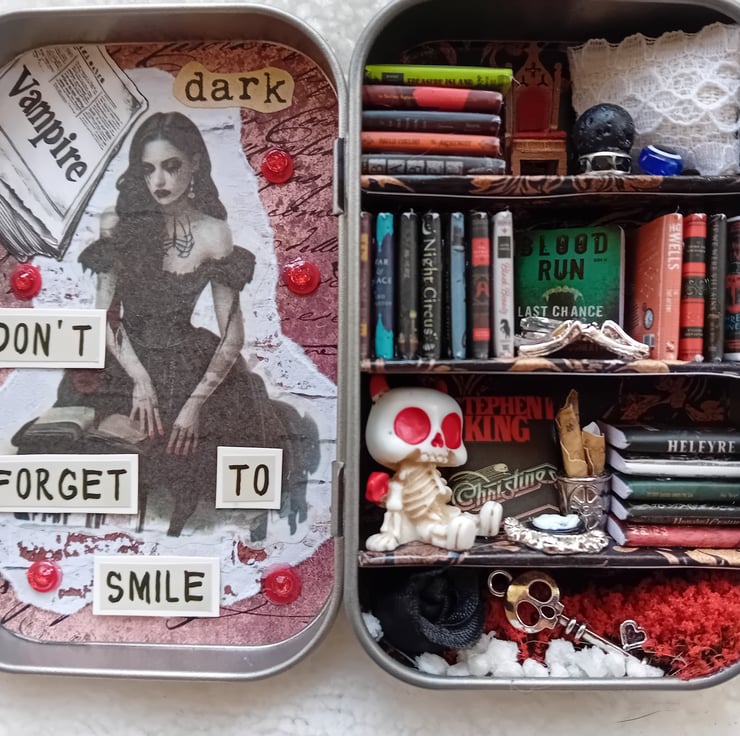 A love of vampires, twilight and gothic romance led the inspiration for this beautiful tin library. Perfect for all your shelfies and perfect for all your book lovers needs