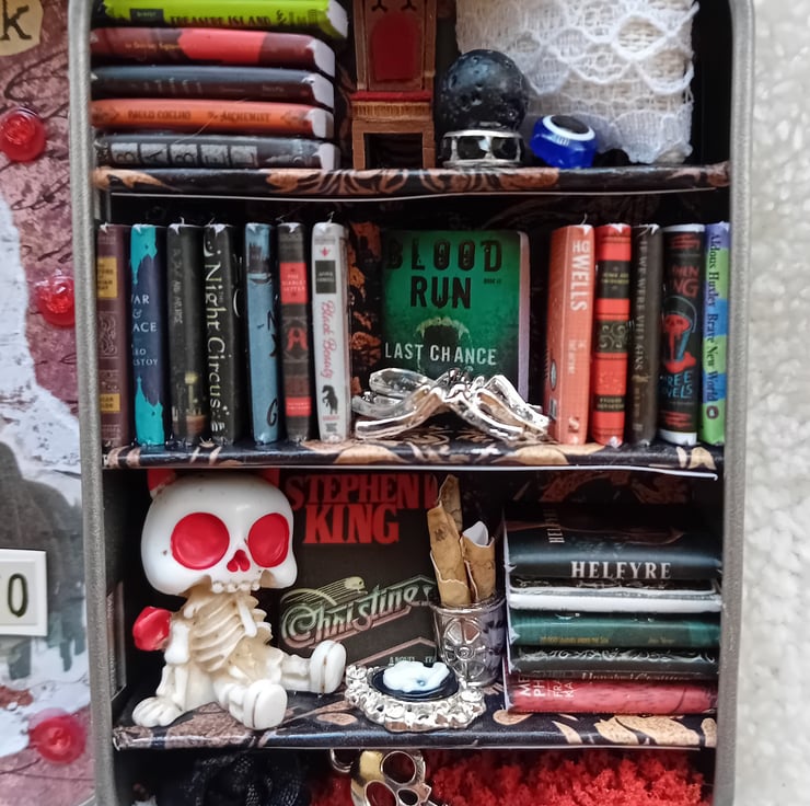 Small tin library, handcrafted, totally unique and will never be repeated. Perfect for all your book lovers needs.