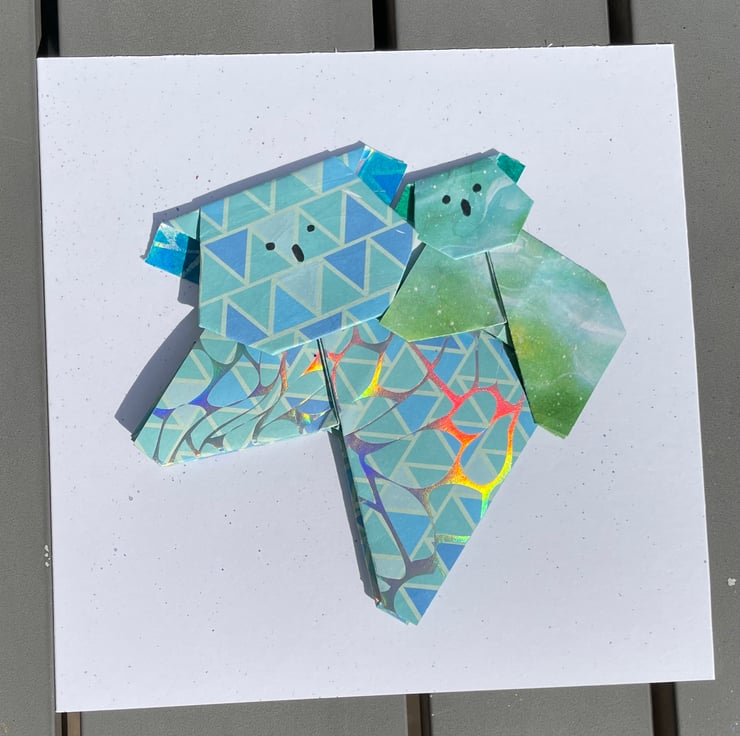New baby/adoption card - blue or pink tones available but actual design may vary depending on origami paper used.