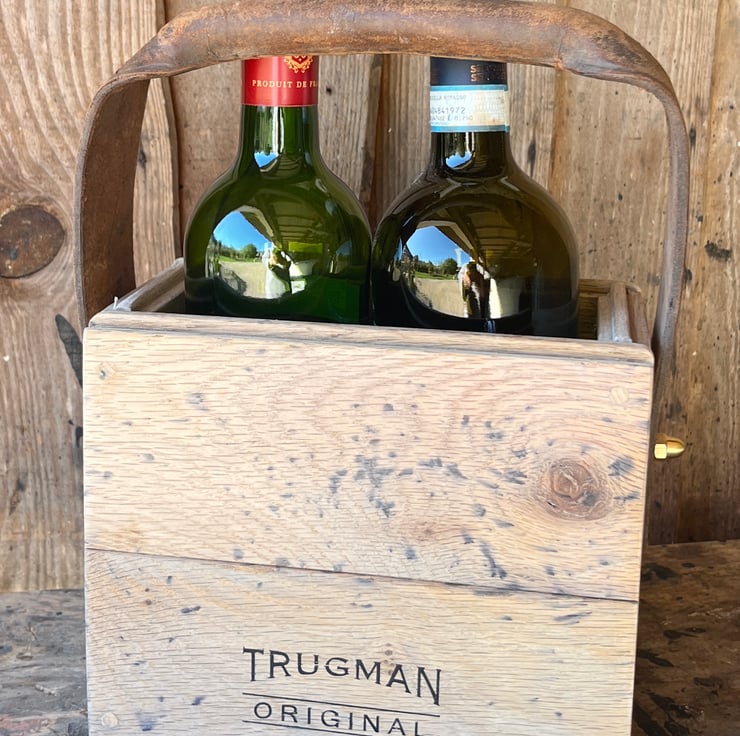 Hand made in the Shed in Yorkshire from salvaged Oak T&G flooring, aged and patinated to hold two standard wine bottles.