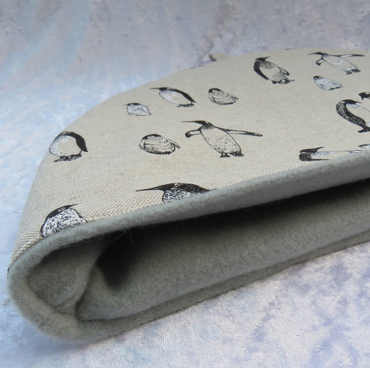 The fabric used is a medium weight cotton, with a penguin design.
