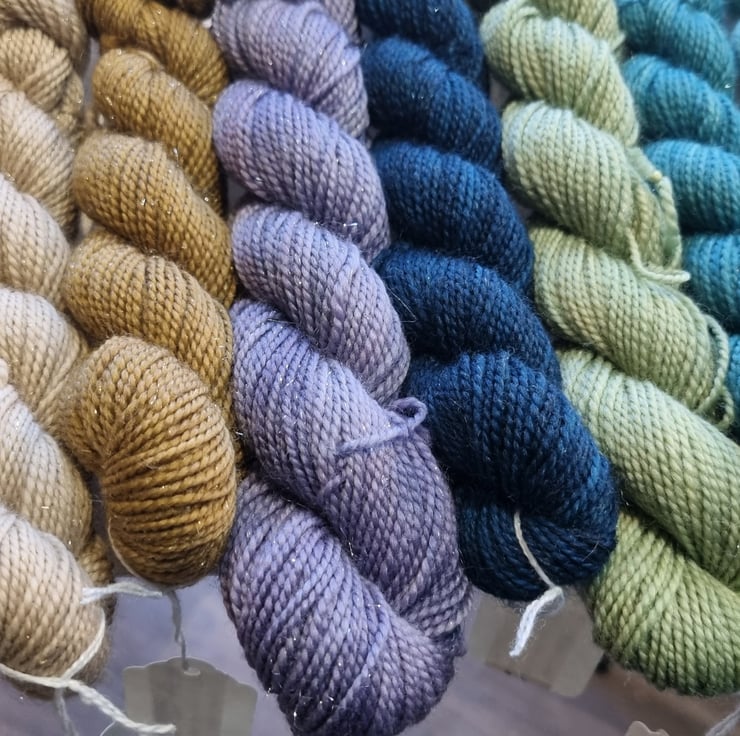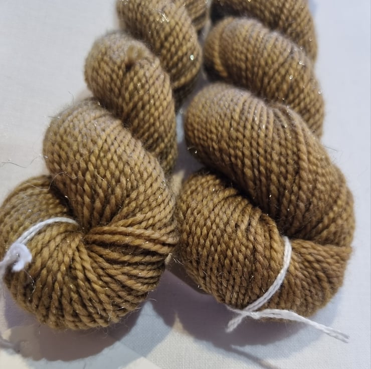 Naturally dyed mini skeins with sparkle. These skeins are gold sparkle 80mts