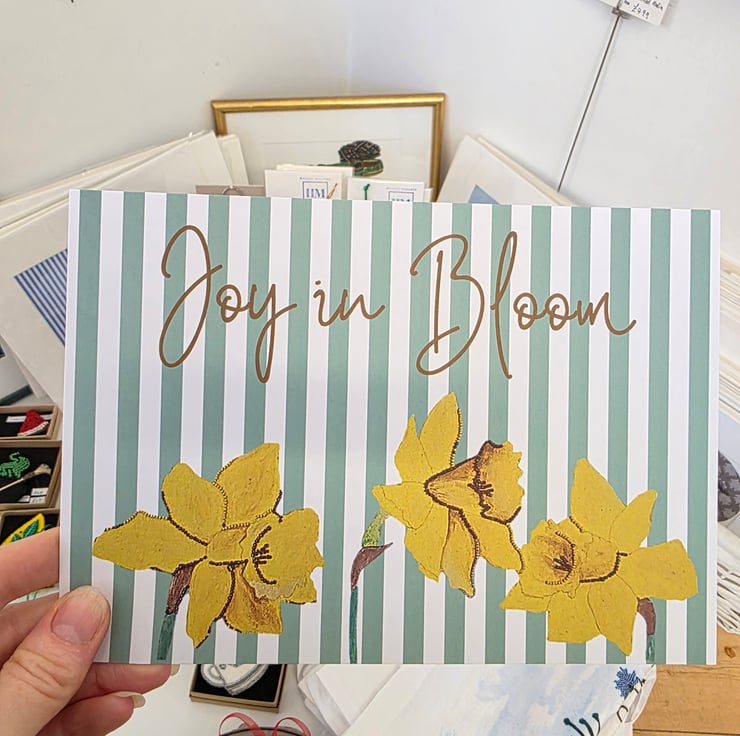 Celebrate the charm of spring with this A5 art print, “Joy in Bloom,” inspired by the final daffodil blooms of Guernsey. Reproduced from my original textile artwork, each print captures the subtle textures, vibrant colours, and delicate details of the hand-stitched original.