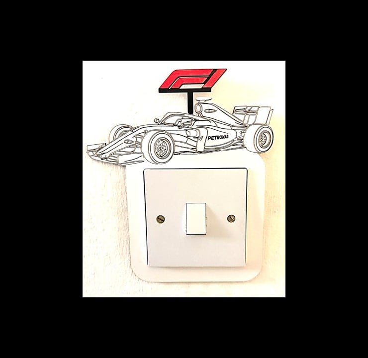 Upgrade your space with our Formula One Light Switch Frame, engineered for fans searching for F1 accessories, motorsport home décor, and premium racing gifts. Designed using friendly craftsmanship, this stylish frame features a precision-engraved Mercedes F1 car and the iconic F1 logo in bold red, making it a perfect addition for any Formula One enthusiast.