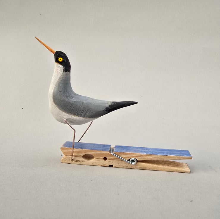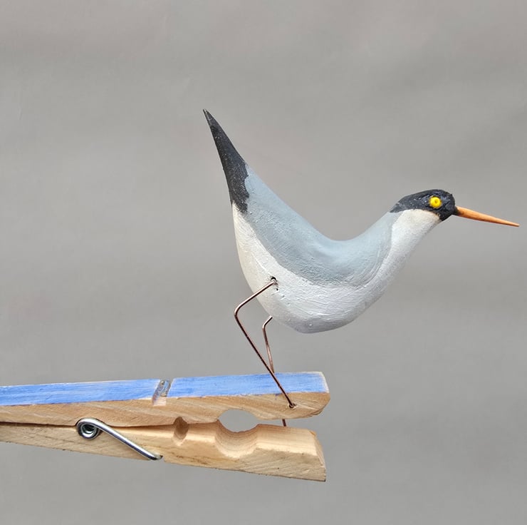 Pecking bird on a clothes peg. Switch between the first two images to get an idea of the action.