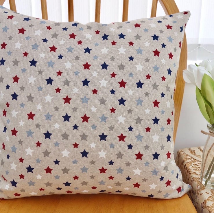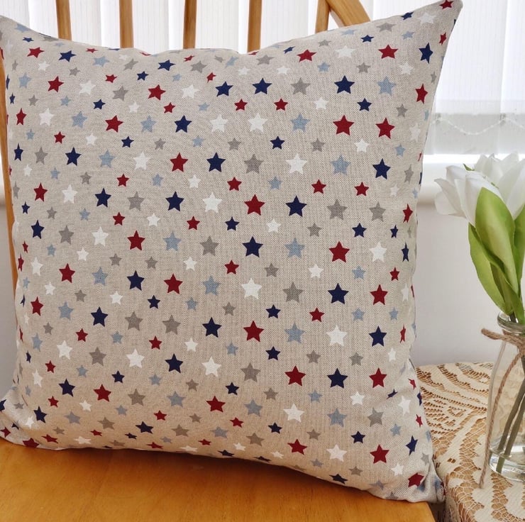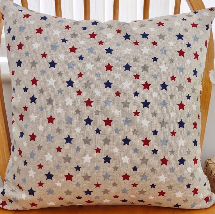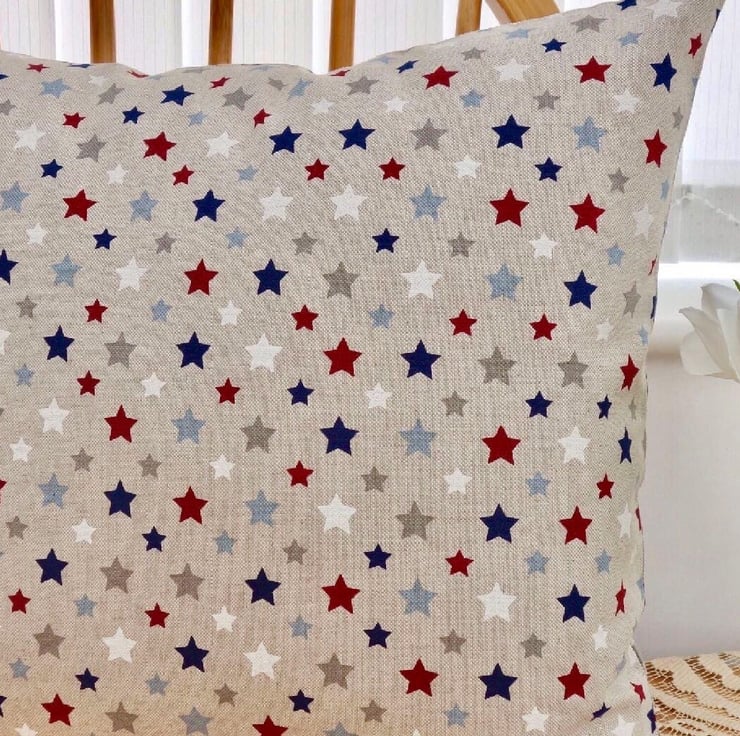 Cushion Cover - Red, White & Blue Stars on a Beige background, double sided.