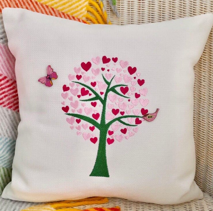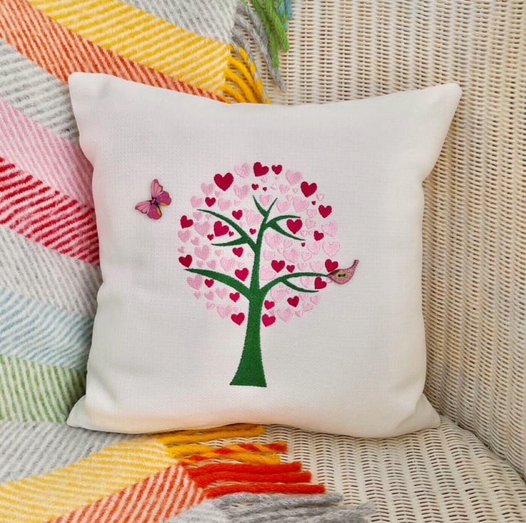 Heart Tree Embroidered Cushion
