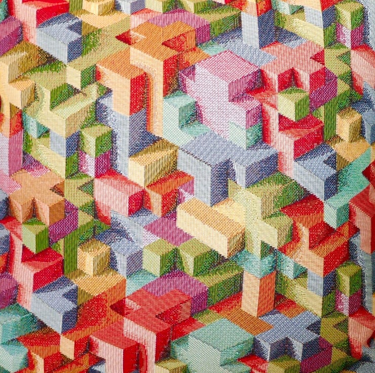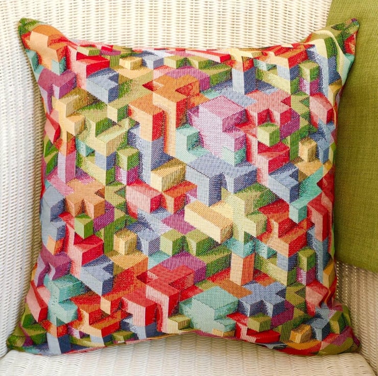 Blocks design Tapestry Cushion Cover / Green reverse.