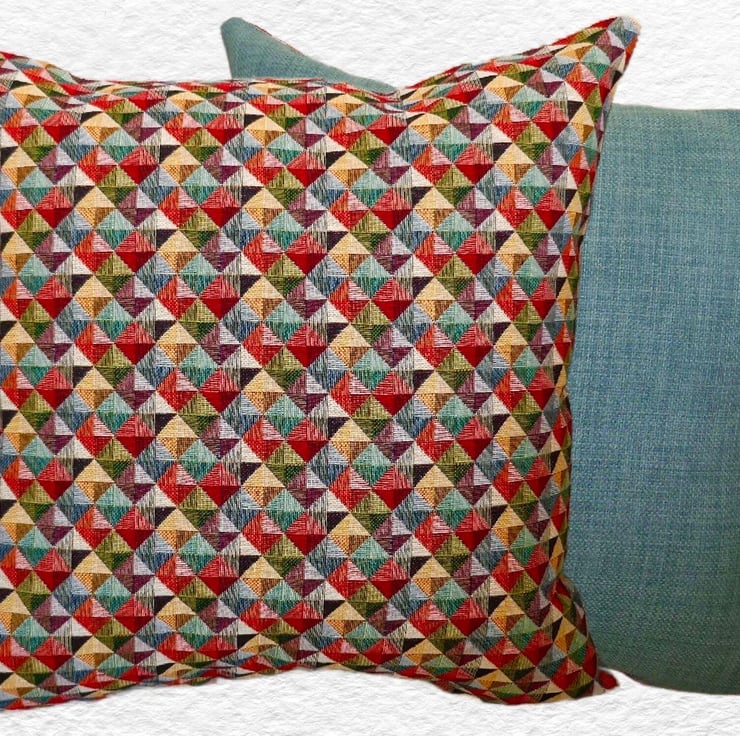 Diamonds design Tapestry Cushion Cover / Duck Egg Blue reverse