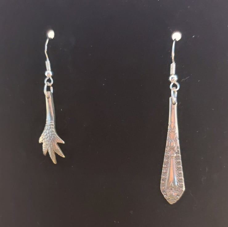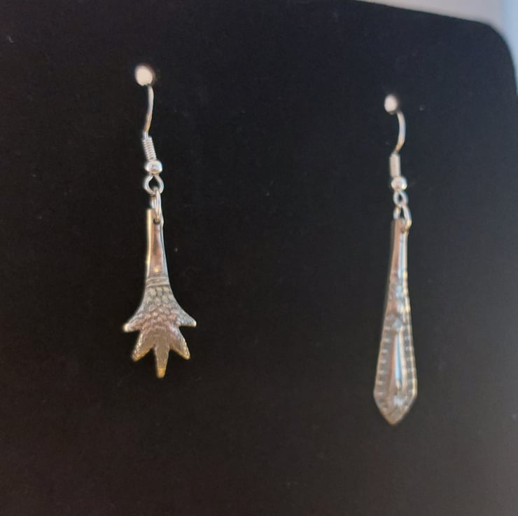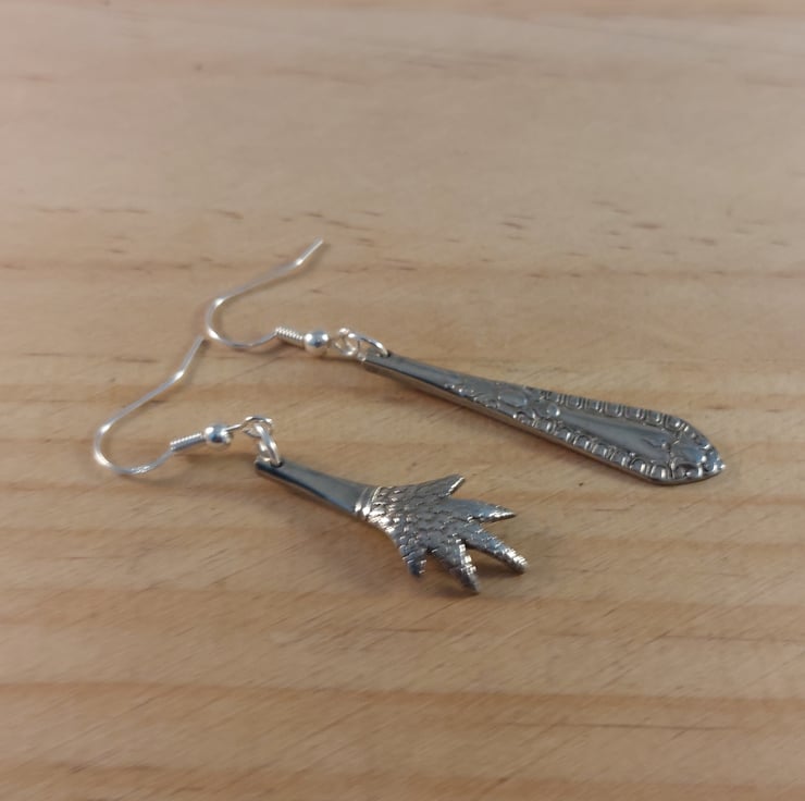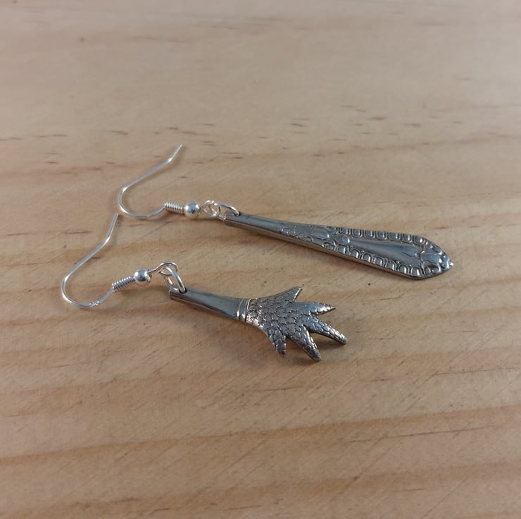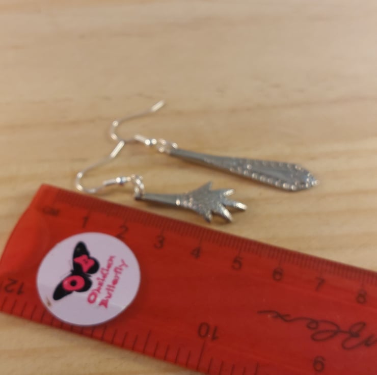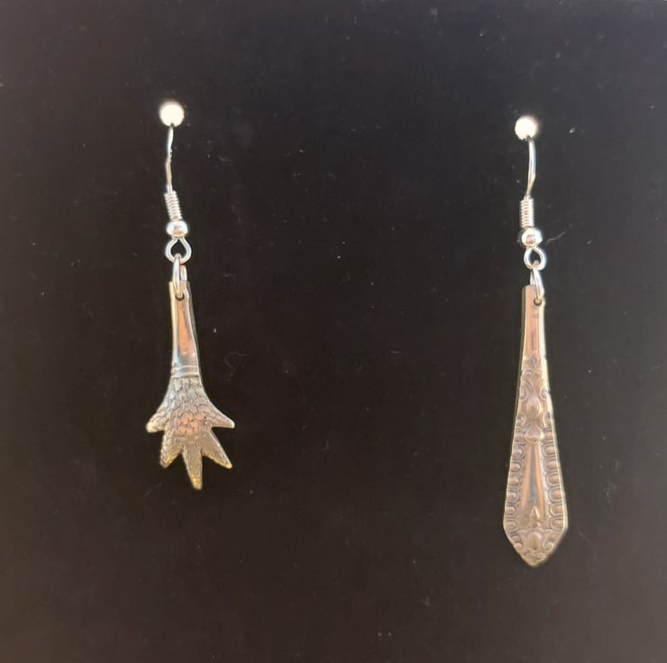 An unusual pair of earrings hand made from an old pair of silver plated sugar tongs. The perfect gift for anyone who loves quirky jewellery.