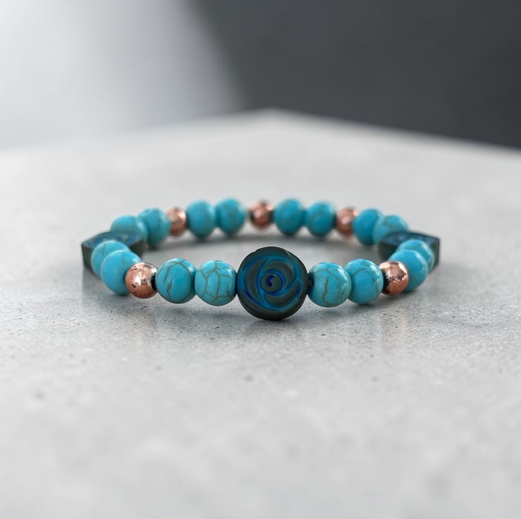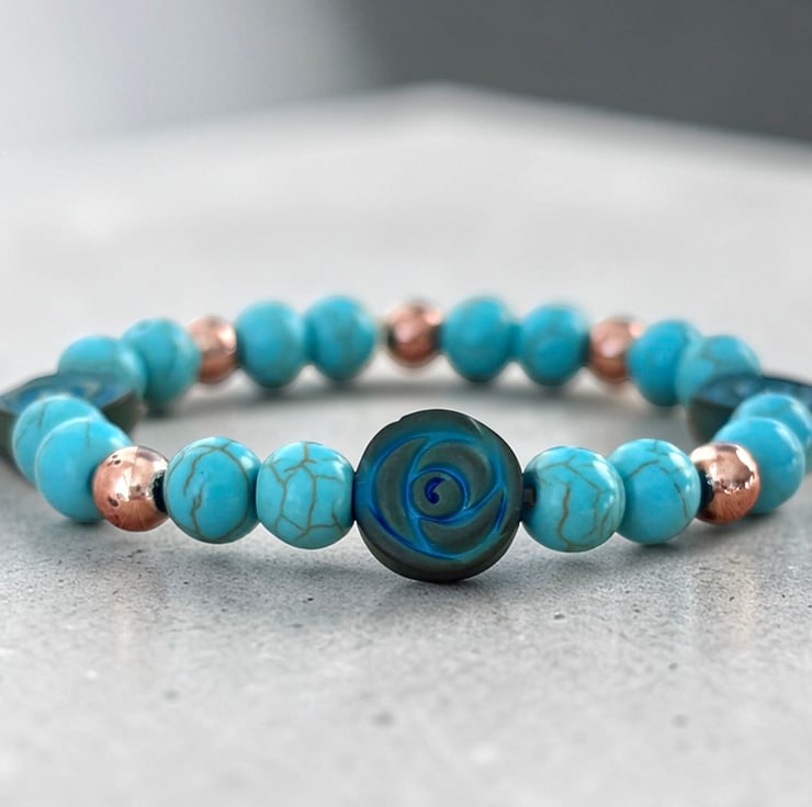 Whether you’re drawn to the soothing tones of turquoise or the chic contrast of rose gold, this bracelet is the perfect blend of style & simplicity.