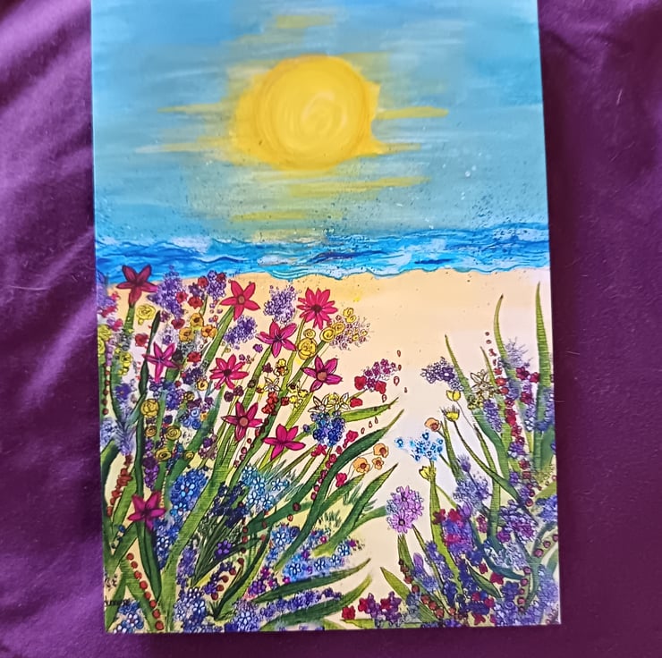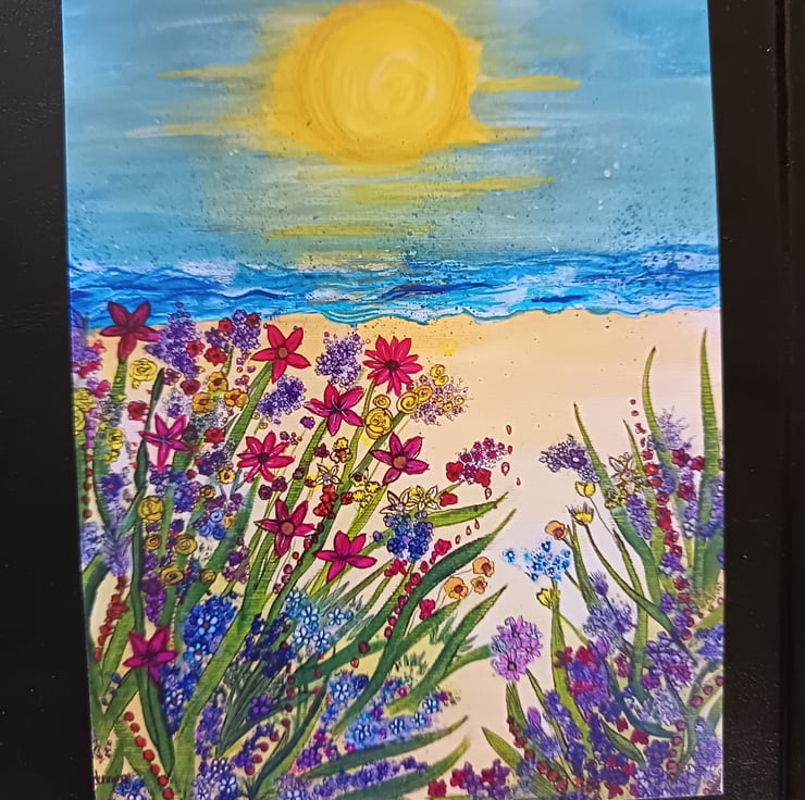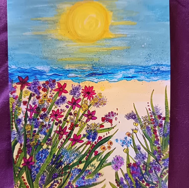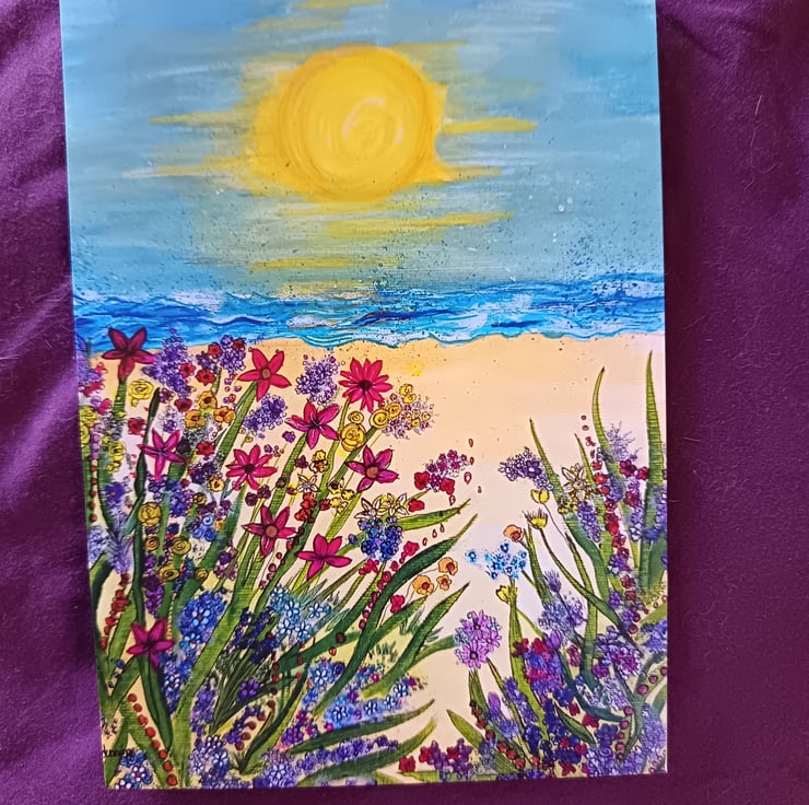 It features my painting Coastal Flowers, which was completed using mixed media, and features a sunny coastal scene with thickets of colourful wild flowers.