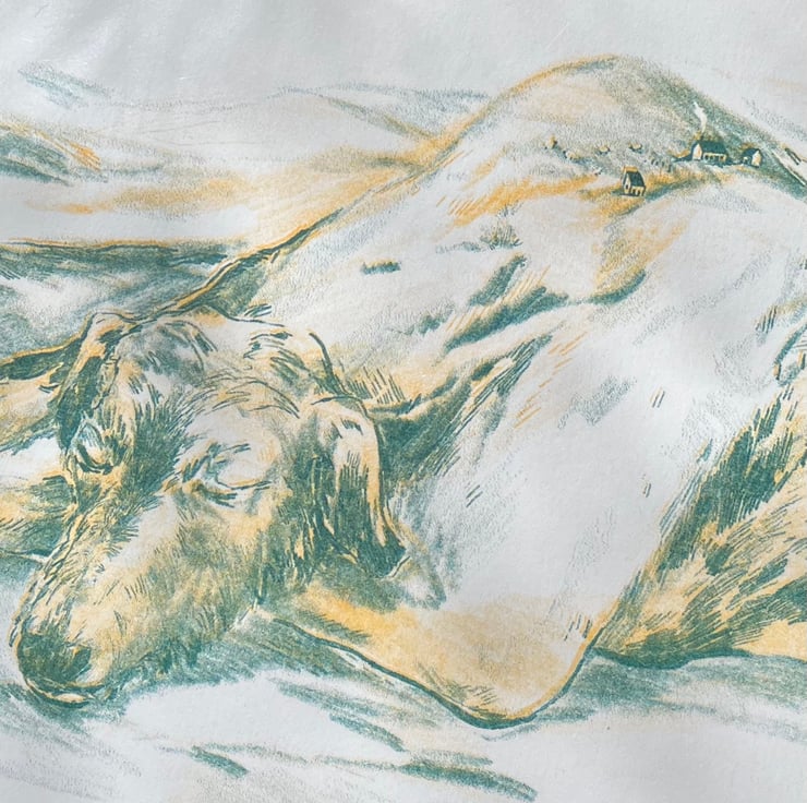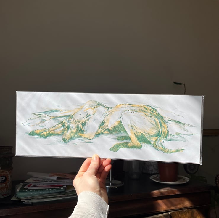 'Bran Sleeping' a 2 colour risograph print on recycled paper.