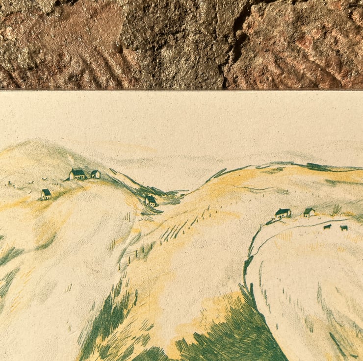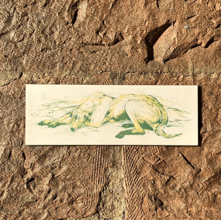 'Bran Sleeping' a 2 colour risograph print on recycled paper.