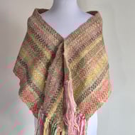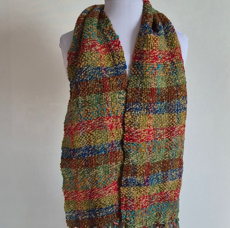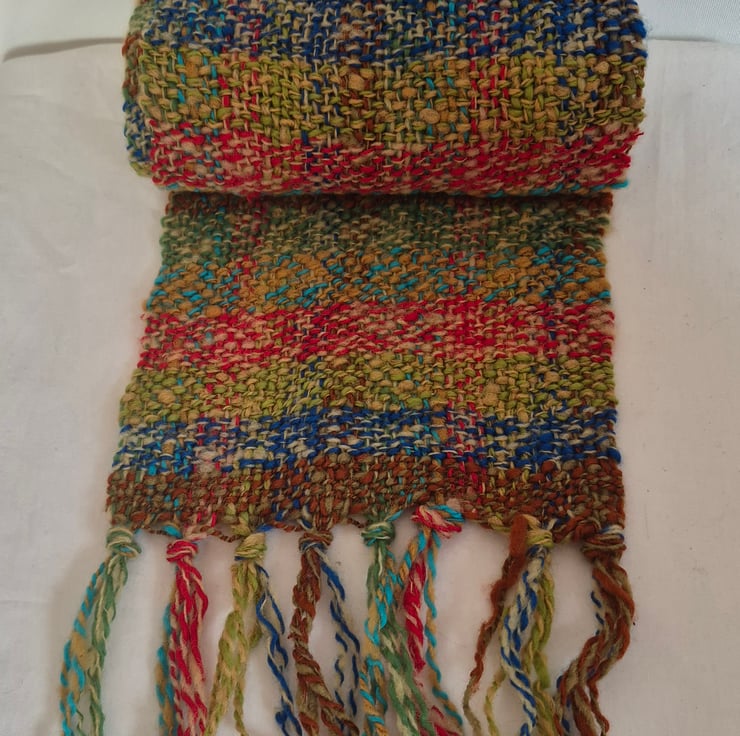 Handwoven multicoloured long 100% wool scarf. all the yarn is hand spun..