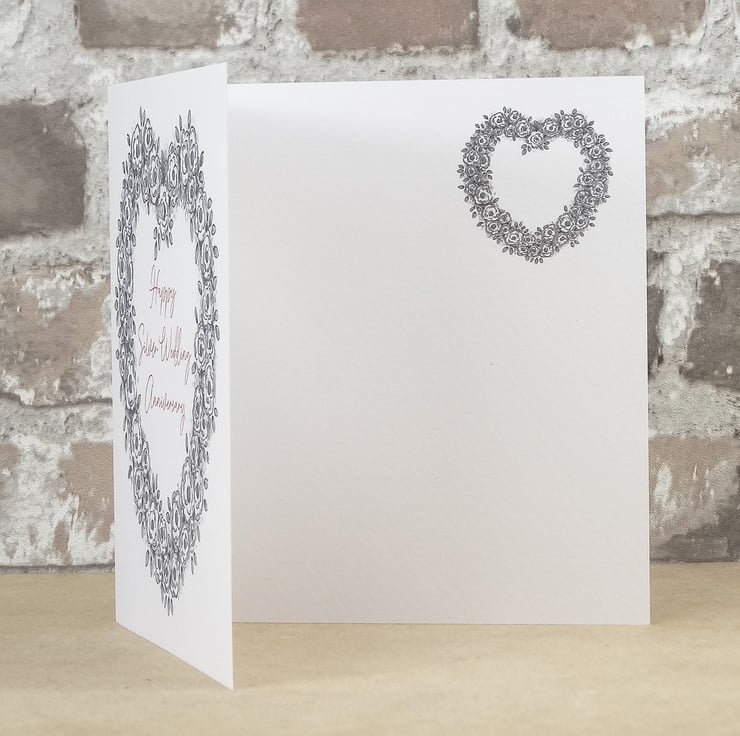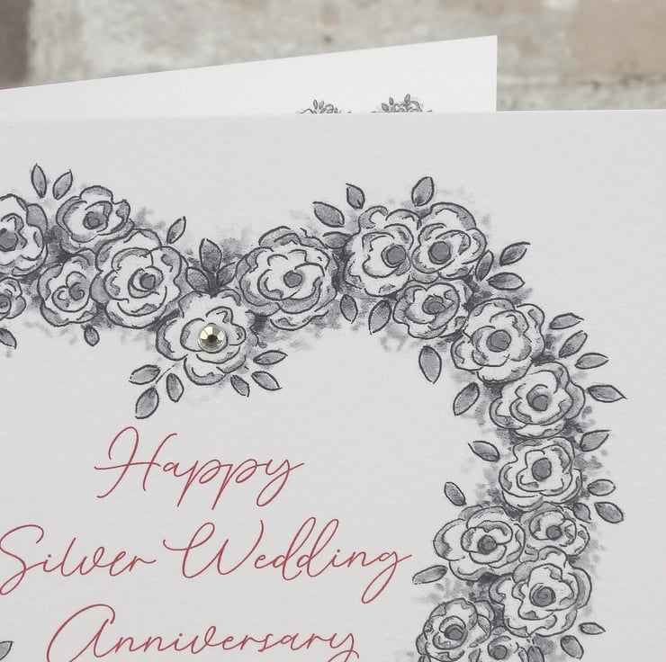This 25th Silver Wedding Anniversary greeting card has been printed with my original artwork on 'New' white texture FSC approved 280gsm card and comes with a brown kraft envelope protected in a clear biodegradable bag.