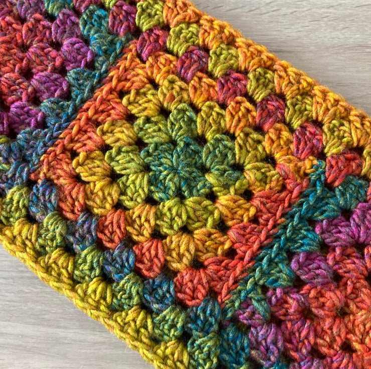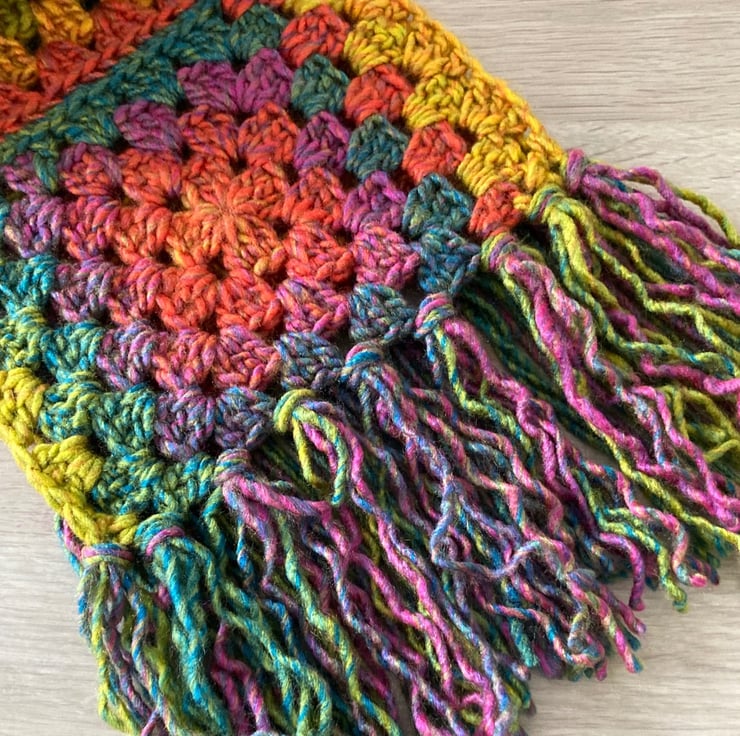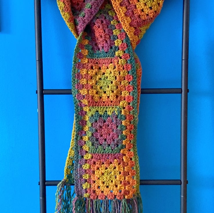 Have crocheted this gorgeous granny square scarf in an 100% Premium Chunky Acrylic, love a ball of yarn that has lots of colours in it…especially Autumnal ones!