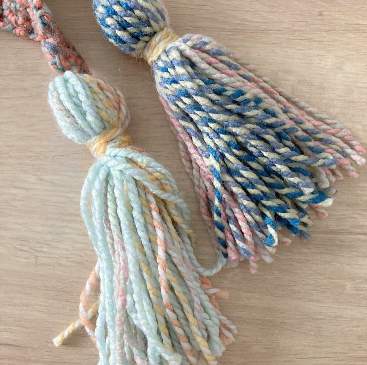 The ends of the scarf are tapered with a deeper middle meaning the wrap can be worn many ways, plus they have tassels on the end……take care with the tassels if you need to wash the scarf, maybe pop the whole thing in a delicates bag.