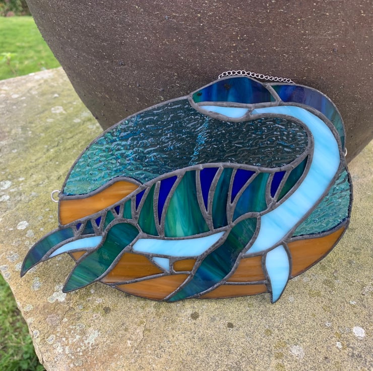 Meet Mary the Plesiosaur swimming through a stained glass Jurassic sea.