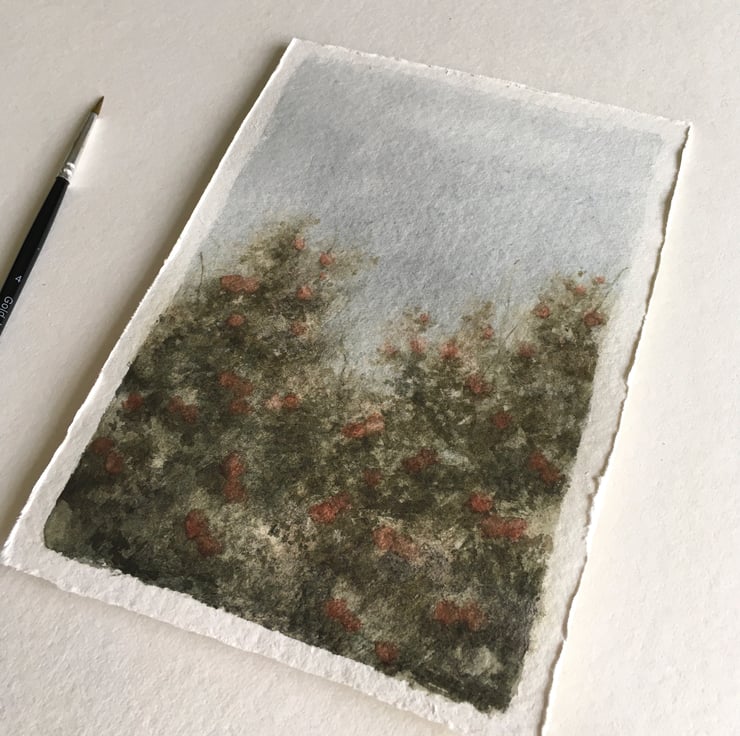 This painting is unmounted and unframed. Painted using Holbein and Daniel Smith watercolours on 100% cotton paper.