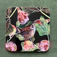 The Wren and Clematis Coaster is 9cm square with a gloss finish.