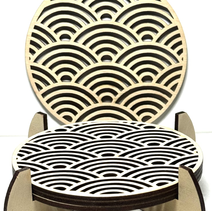 This fantastic 100 mm x 100 mm set of 4 wooden coasters will elevate any table setting and make you proud to serve drinks to family and friends. Crafted from premium Baltic birch plywood and precision laser-cut for a flawless finish, each piece combines durability with elegant design. The set also includes a cleverly designed two-piece stand that slots together effortlessly, keeping your coasters neatly stored when not in use. A stylish and practical addition to any home—and a perfect gift idea for housewarmings, birthdays, or anyone who appreciates quality craftsmanship.