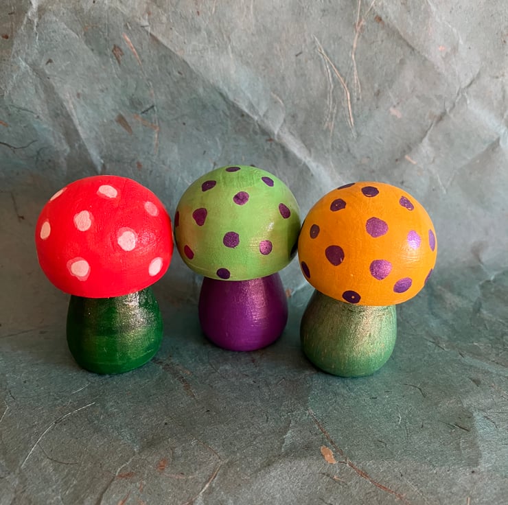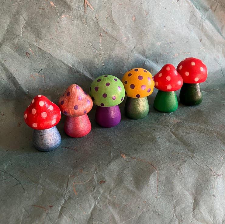Here are 6 cute little hand painted toadstools
