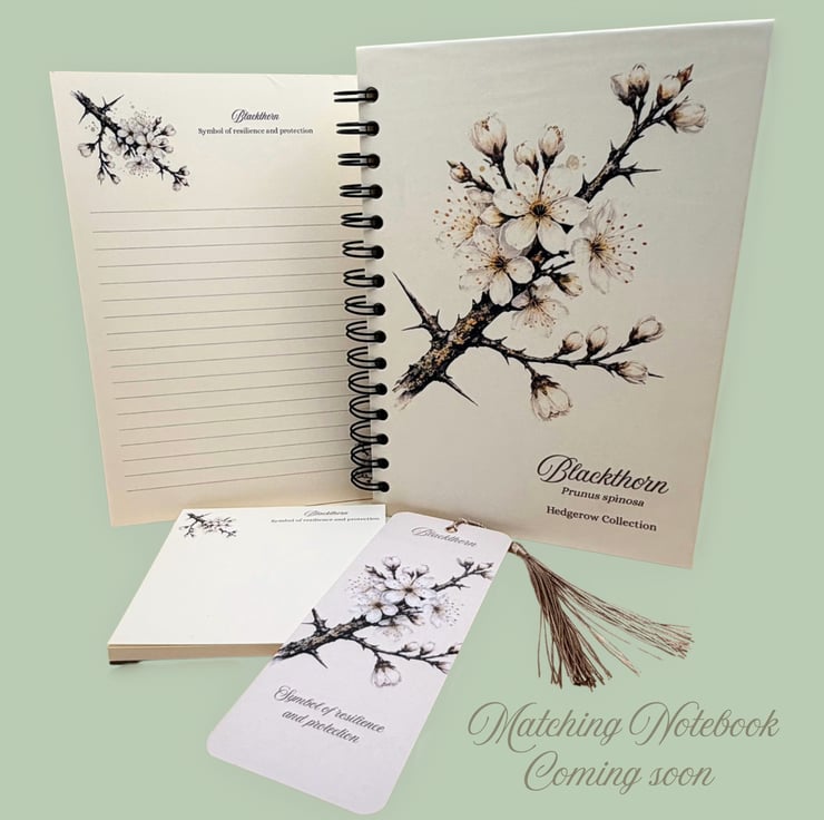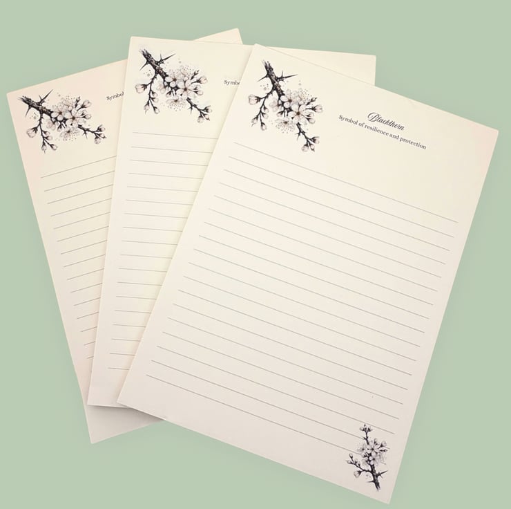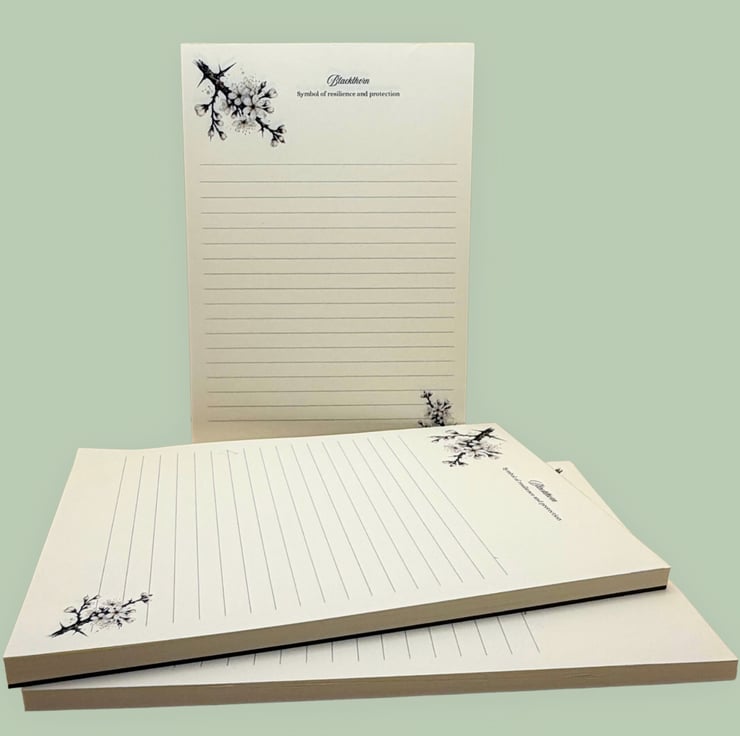 A soft and calming handmade A5 notepad inspired by blackthorn blossom, part of my Hedgerow Collection.