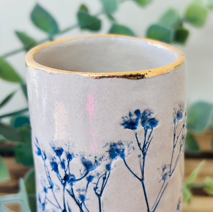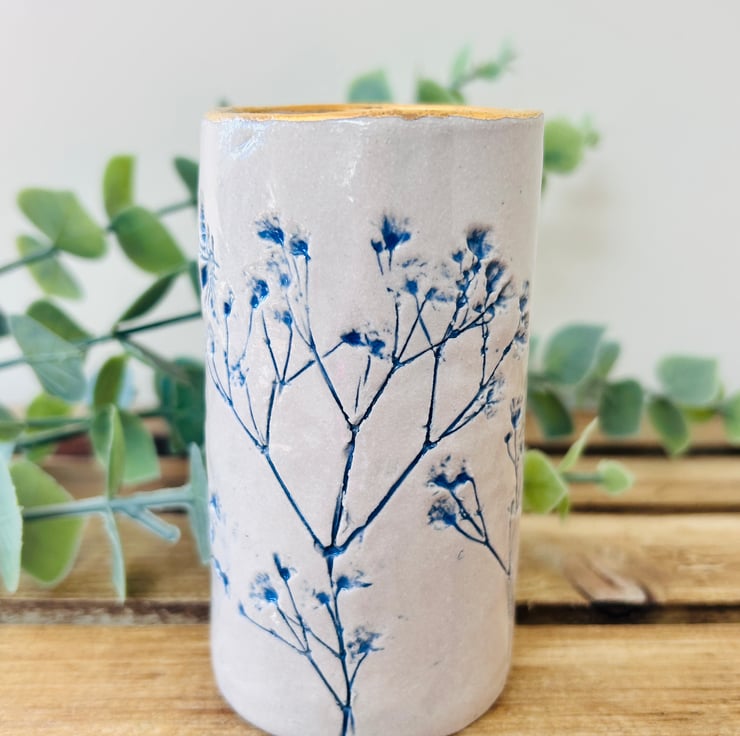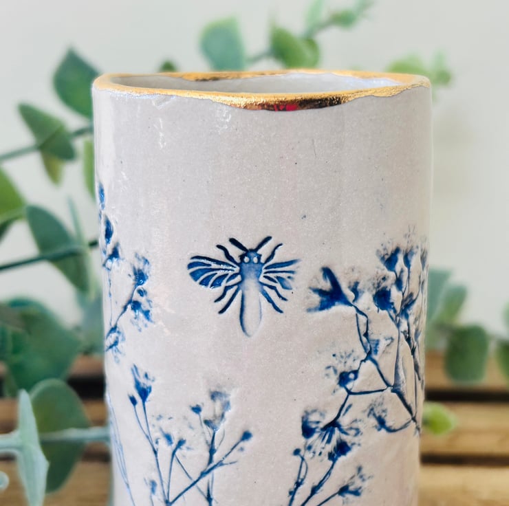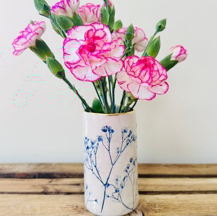 Each piece is individually pressed with real plants, allowing the clay to capture their delicate textures and intricate details. Because I use real plants in the making process, every vase is completely unique, no two will ever be the same.