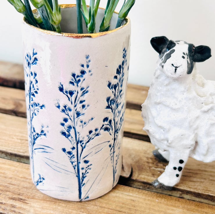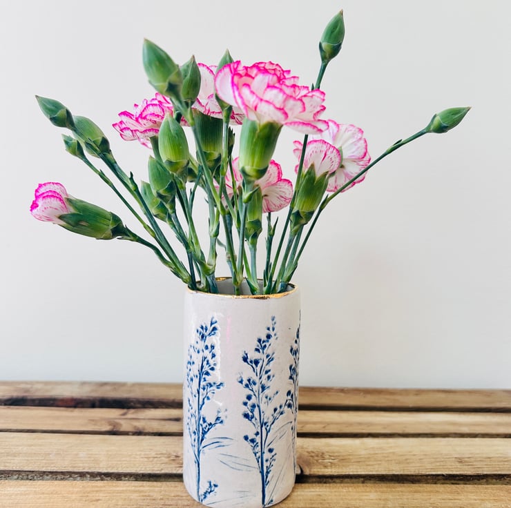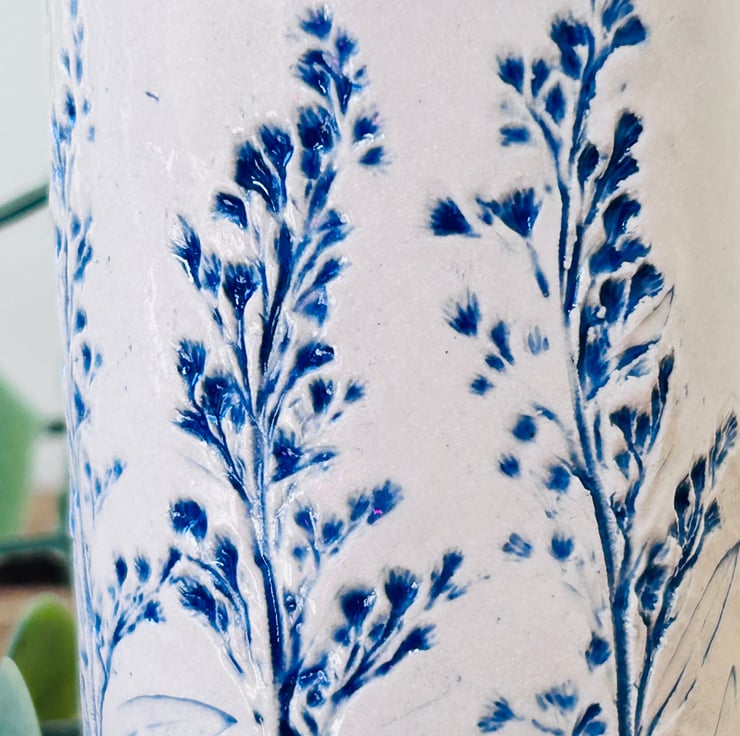 Each piece is individually pressed with real plants, allowing the clay to capture their delicate textures and intricate details. Because I use real plants in the making process, every vase is completely unique, no two will ever be the same.
