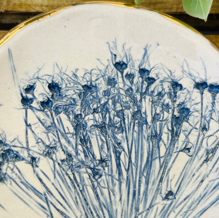Each dish is individually pressed with plants so no two are ever the same. Some dishes have the addition of a little bee.