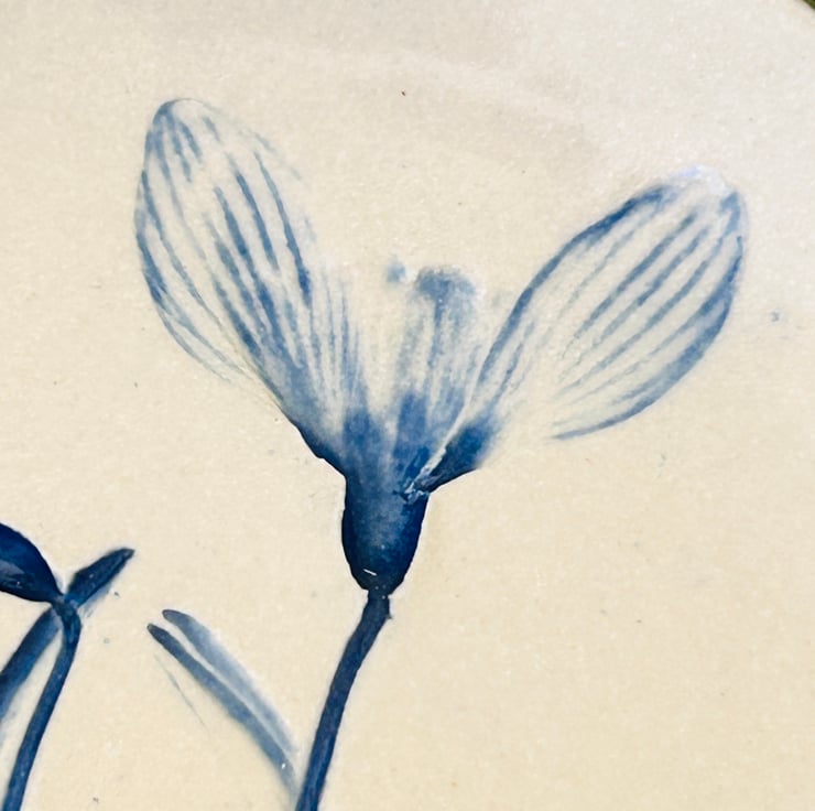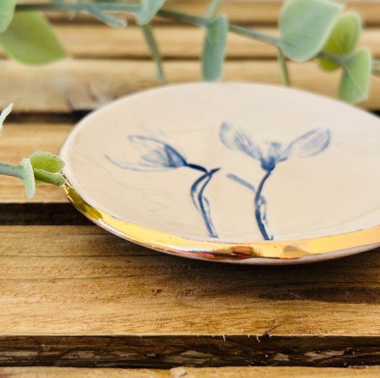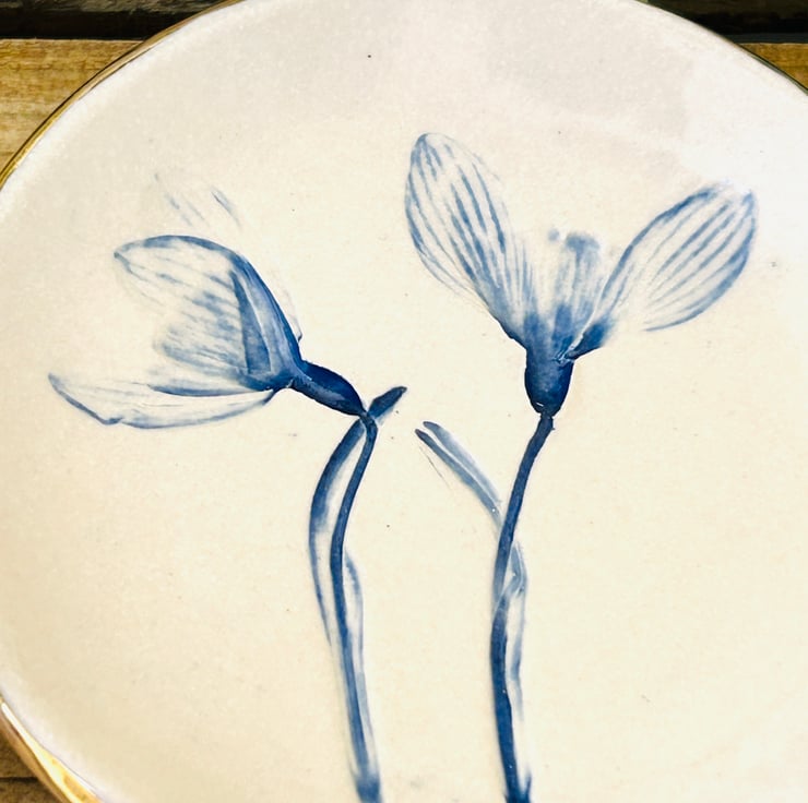 Each dish is individually pressed with plants so no two are ever the same. Some dishes have the addition of a little bee.