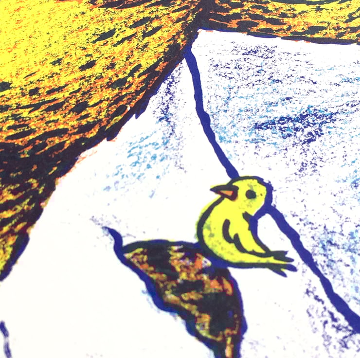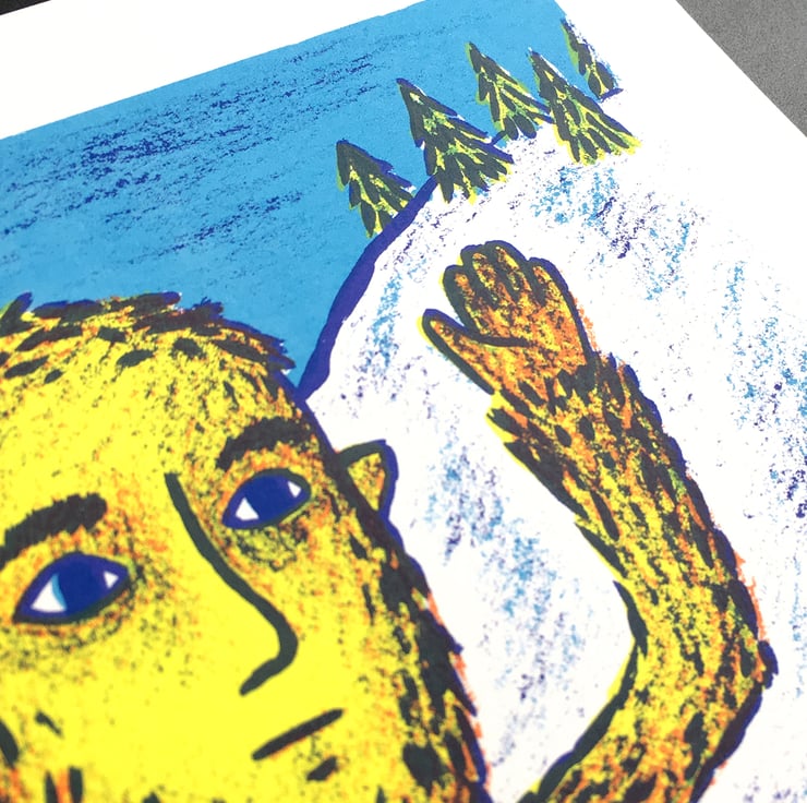 Four-colour screen print using water-based inks on 300gsm Canaletto Bianco paper.