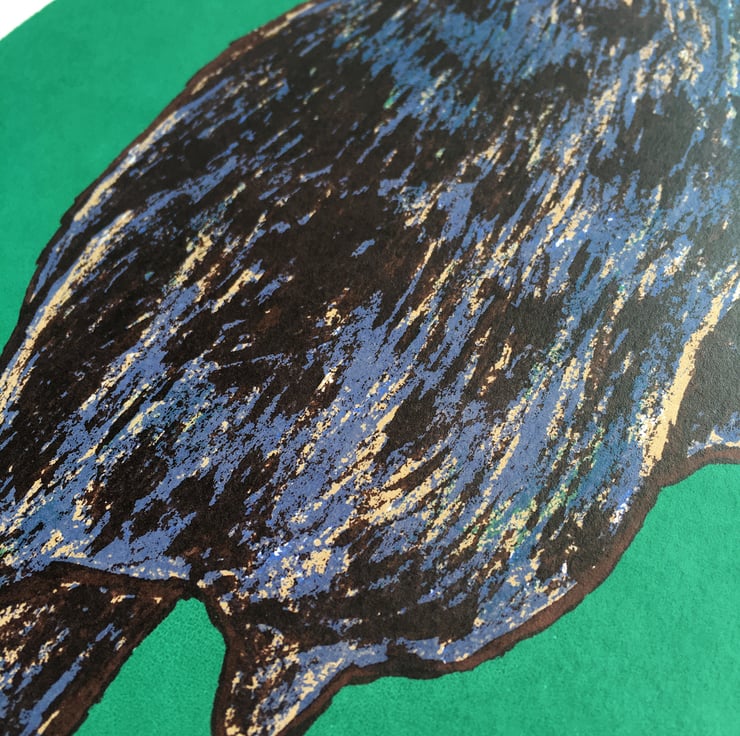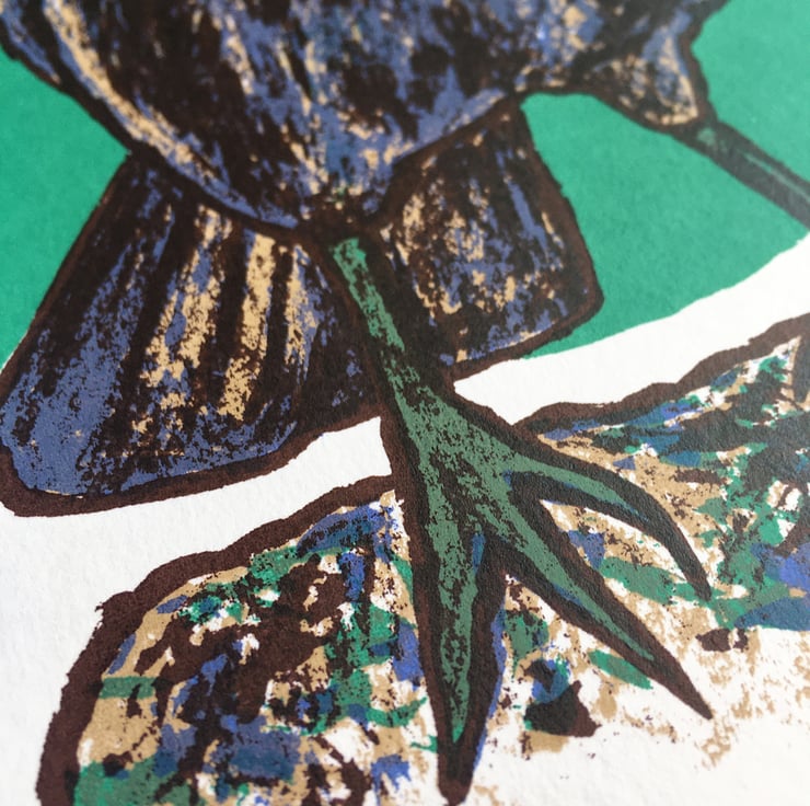Four-colour screen print using water-based inks on 300gsm Snowden Cartridge paper.