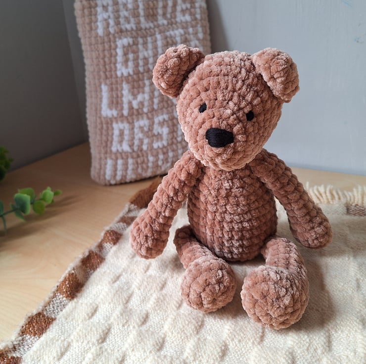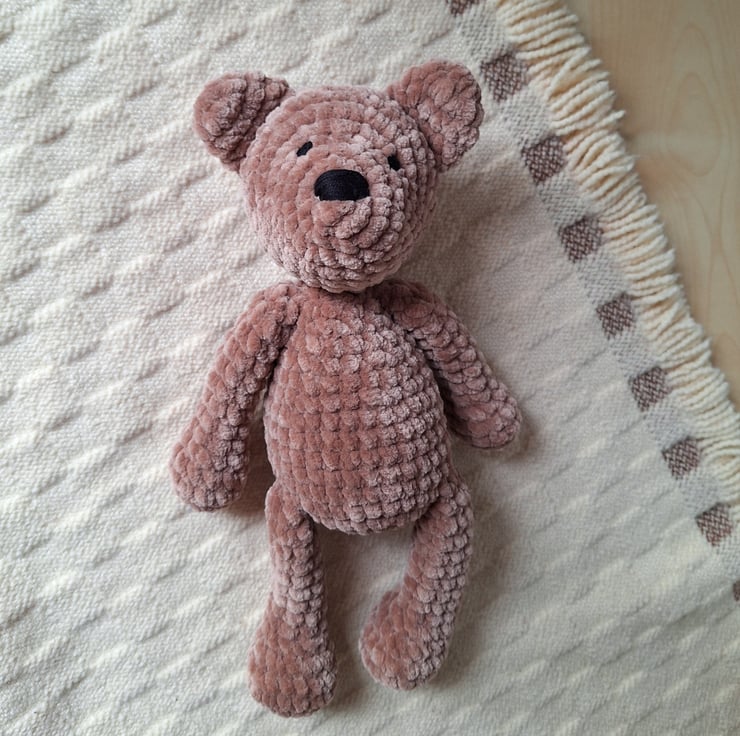 Crocheted bear in the colour latte. It has embroidered eyes so it is safe for babies. This bear is an ideal new baby gift. Lovingly handmade by me so each one is unique.