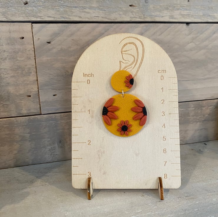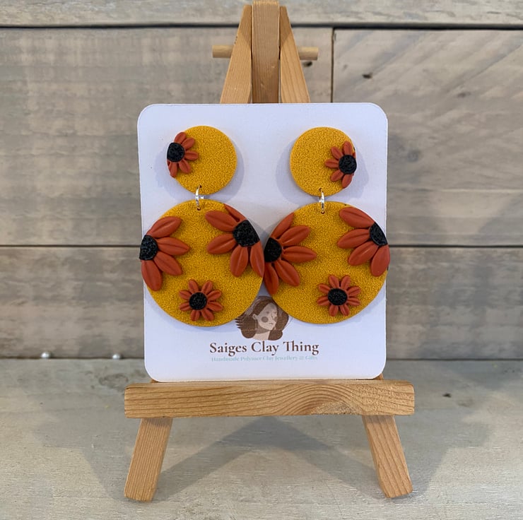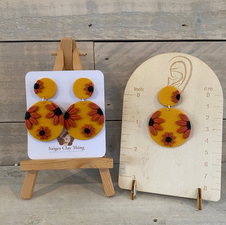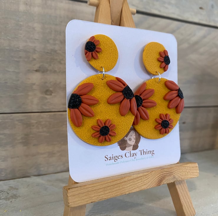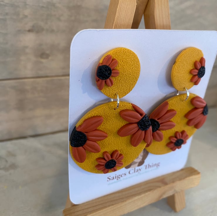 Bright floral pattern earrings, handmade from polymer clay. Lightweight and comfortable, perfect for everyday wear or adding a pop of colour.
