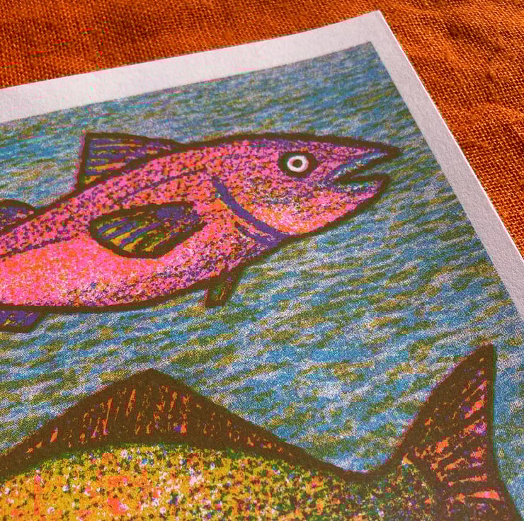Three-colour risograph print, on 120gsm Munken Pure Rough Cream paper.