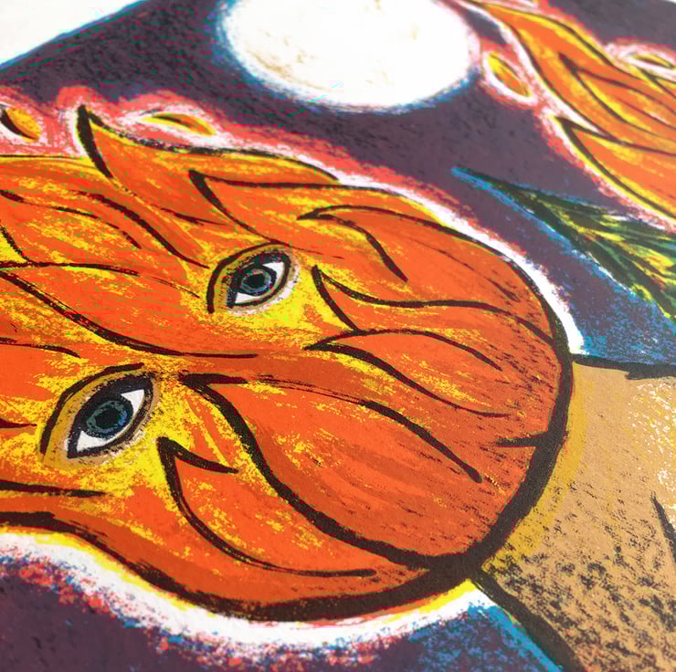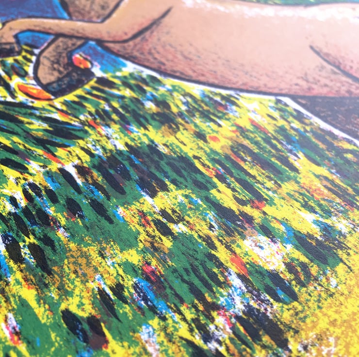 Five-colour screen print using water-based inks on 300gsm Snowden Cartridge paper.