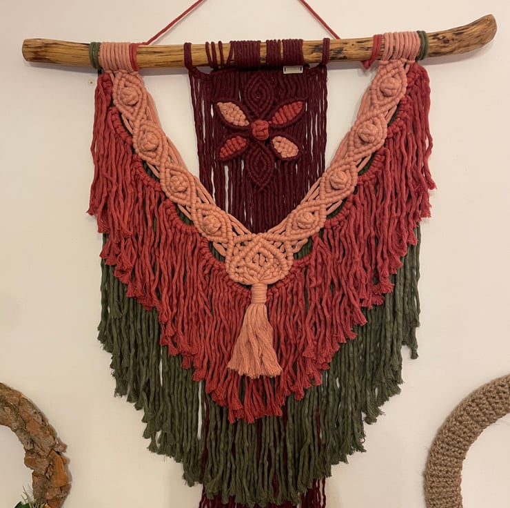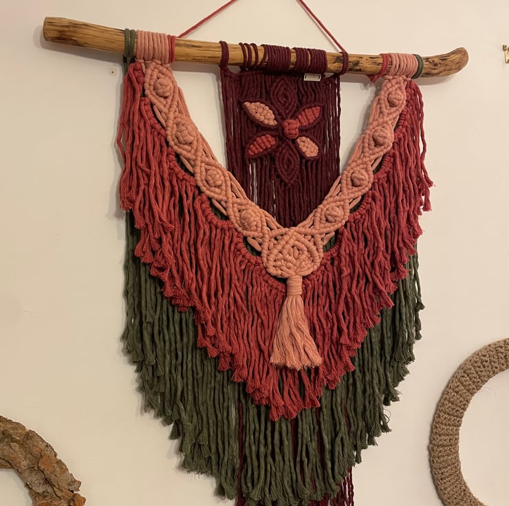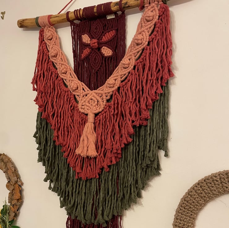 Handmade with love! This textured macrame tapestry brings a touch of nature and warmth to your home. Featuring rich autumn colors and a unique layered design, it’s a one-of-a-kind piece of wall art.