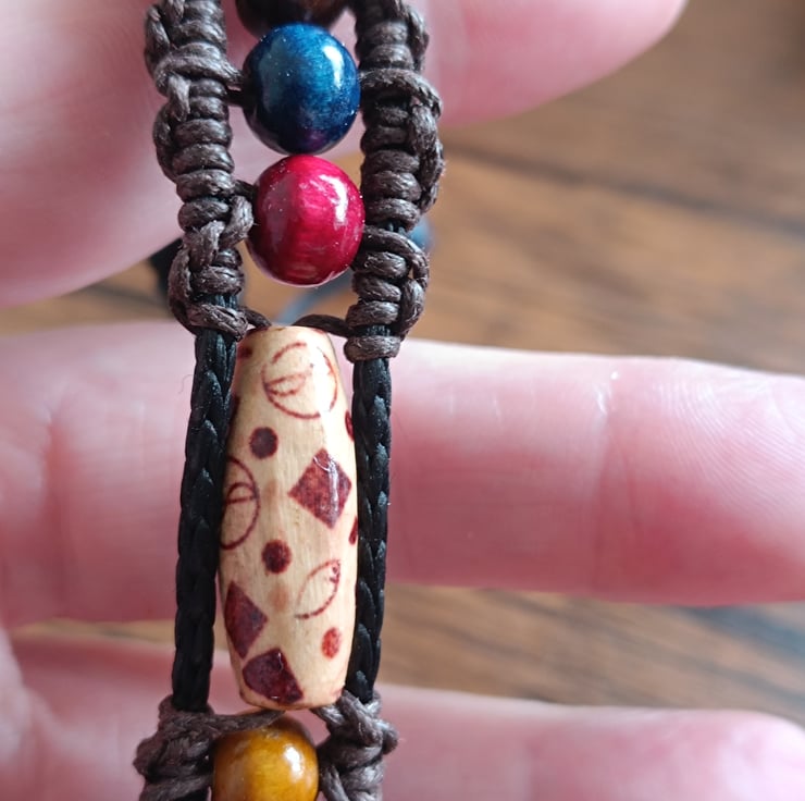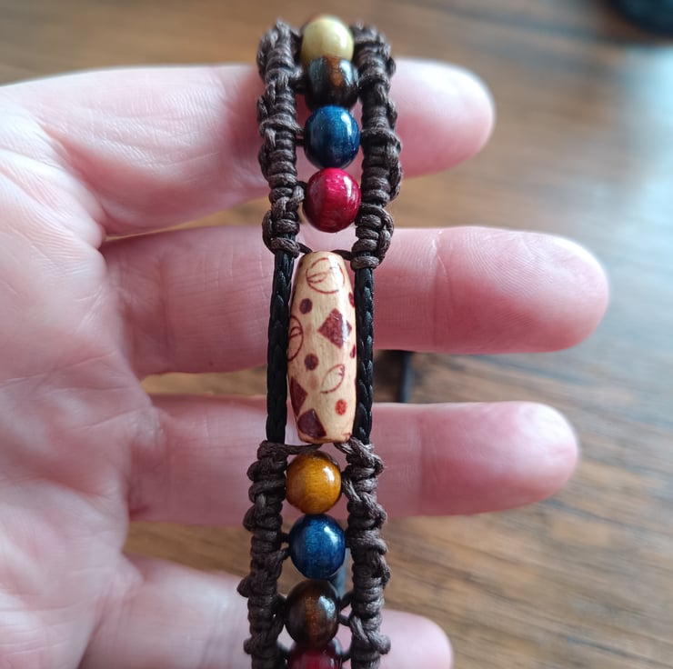 Looking for something a little different? This handcrafted bracelet brings together rich brown cord, vibrant beads, and a unique central detail for a look that’s effortlessly cool and full of character.