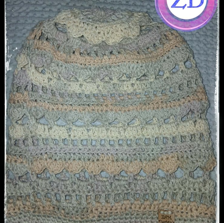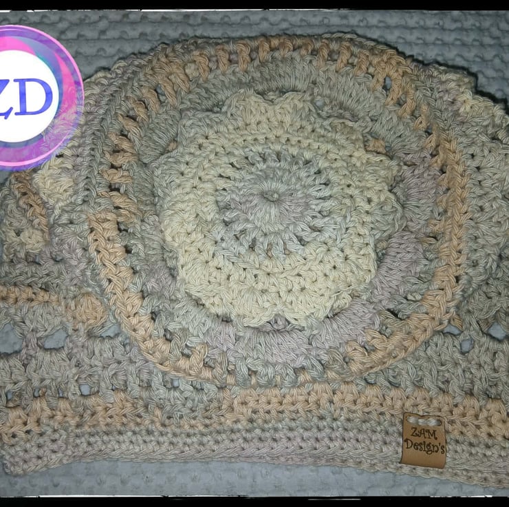 Boho mandala slouchy hat made from 100% recycled yarn (80% Cotton 20% Polyester)