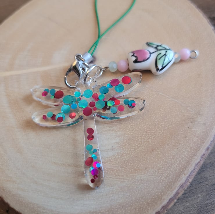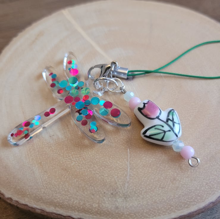 Resin Dragonfly and Tulip Phone Charm