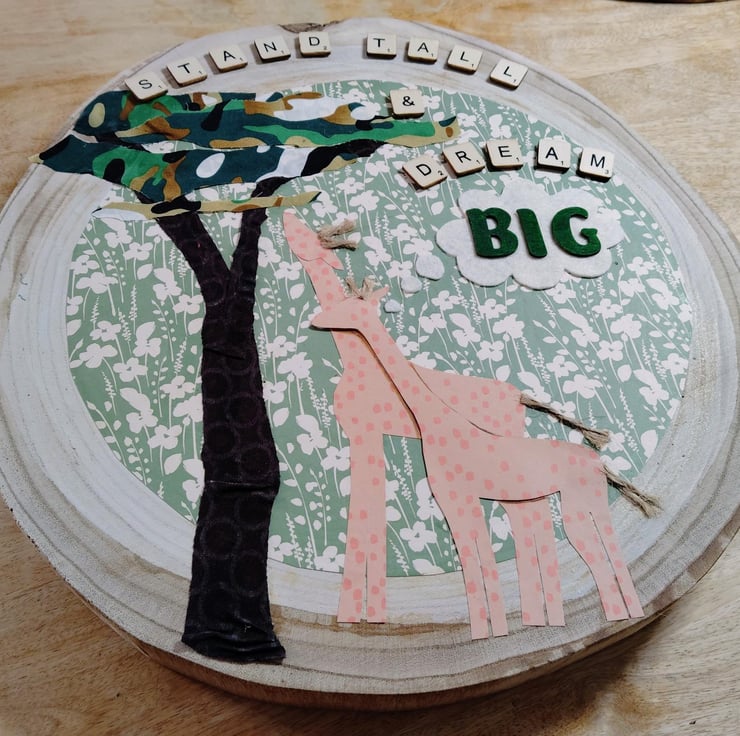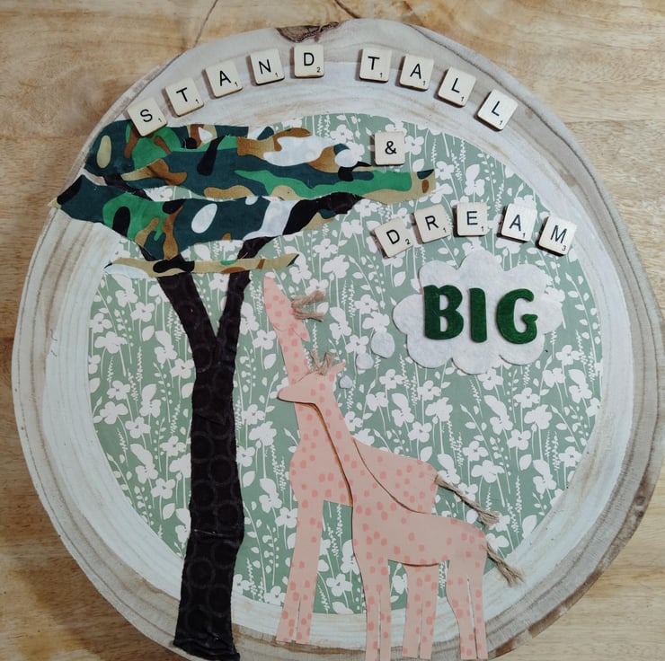 Giraffe dream big had designed and decorated wall art plaque