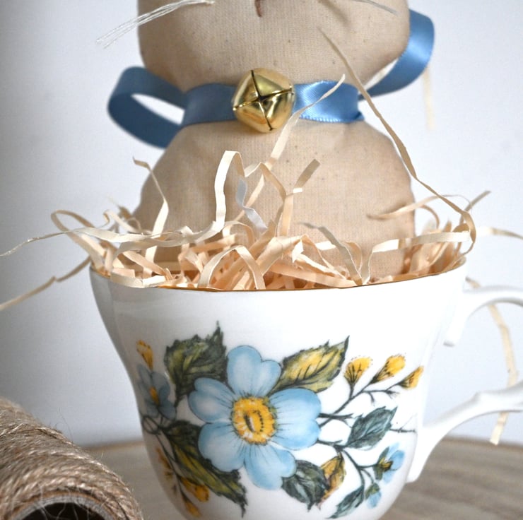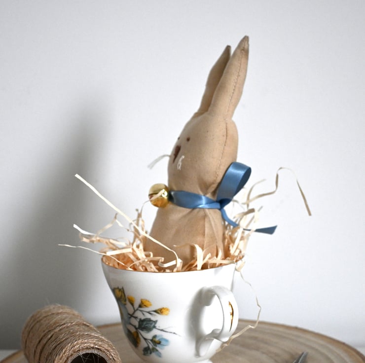 Please also note you will receive the bunny, straw and the cup only, the wooden plinth and sewing equipment are for photographic purposes only.
